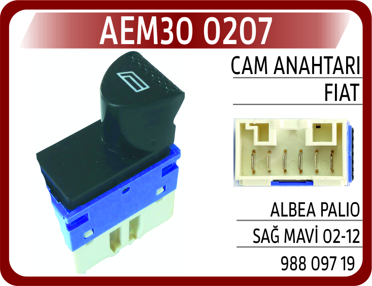 CAM ANAHTARI FIAT ALBEA PALIO SAĞ MAVİ 02-12